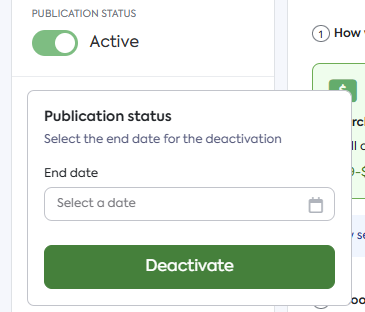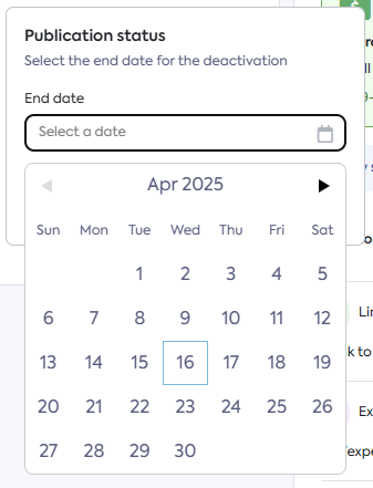 A pop-up window will appear prompting you to set an End Date. Hover over the End Date field and select the date until which you want the publication to remain deactivated. This allows you to plan for when the offer will automatically reactivate.