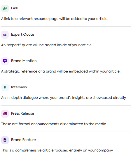 Link, Expert Quote, Brand Mention, Interview, Press Release, or Brand Feature