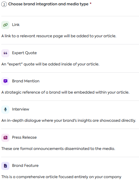 Brand Integration & Media Type (e.g., link, brand mention, press release)