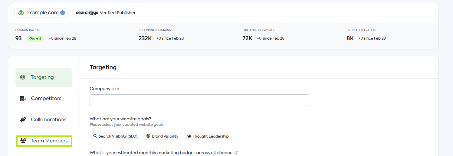 SearchEye allows you to manage which of your team members will be associated with specific websites listed on your All Brands section. This allows you to delegate which members will receive Link Building Approvals.