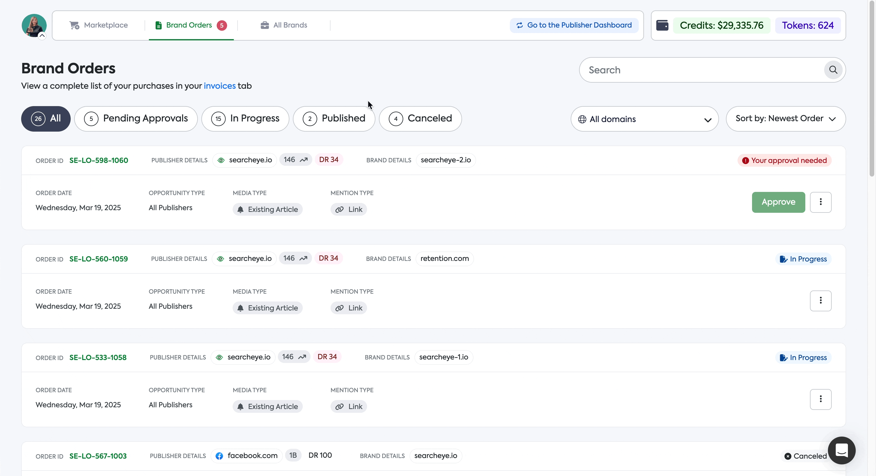 As a brand, SearchEye allows you to fully manage your requests directly through the platform in just a few easy clicks.