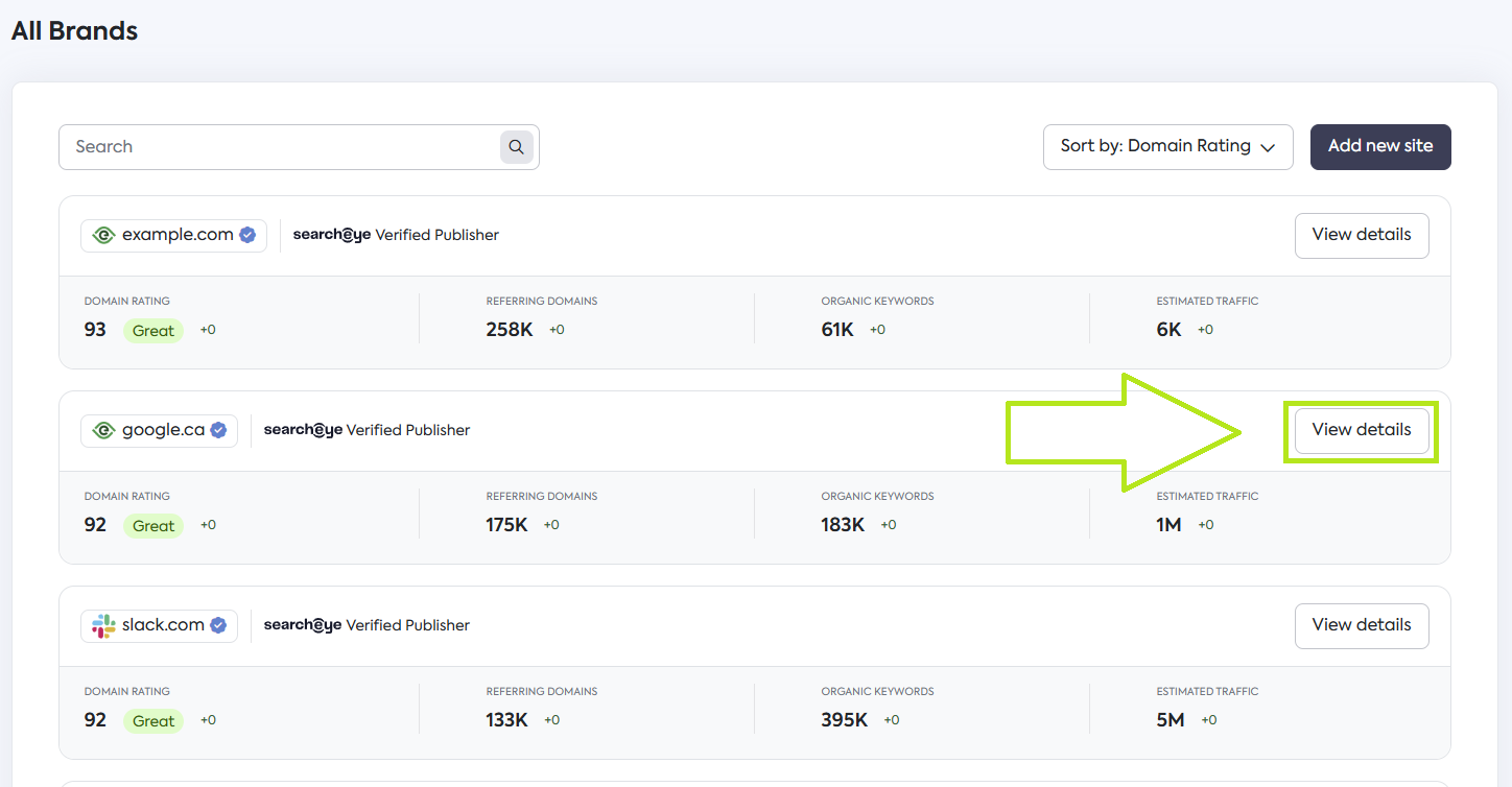 From the Brand dashboard click on All Brands to view all your listed websites.