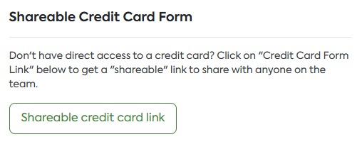 Simply click the "Credit Card Form Link" to generate a shareable link that can be easily shared with any team member needing access to the billing information.