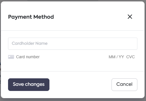 From the Payment Method pop-up, simply fill out the necessary details and click on Save changes.