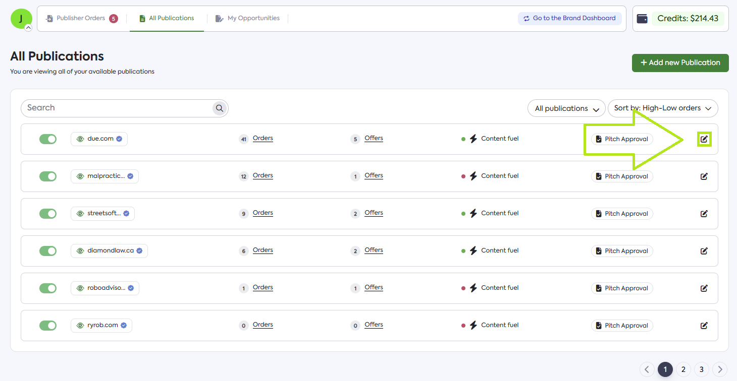 From the Publisher dashboard click on All Publications to view all your listed publications.