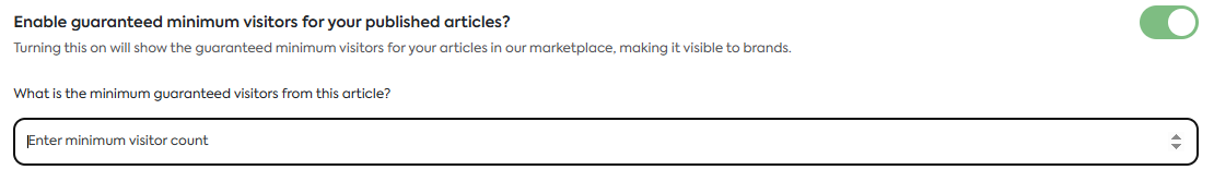 When enabled, this will display the minimum guaranteed visitors for your articles in the marketplace, making it visible to brands. You can also set and showcase the visitor count you guarantee for each article.
