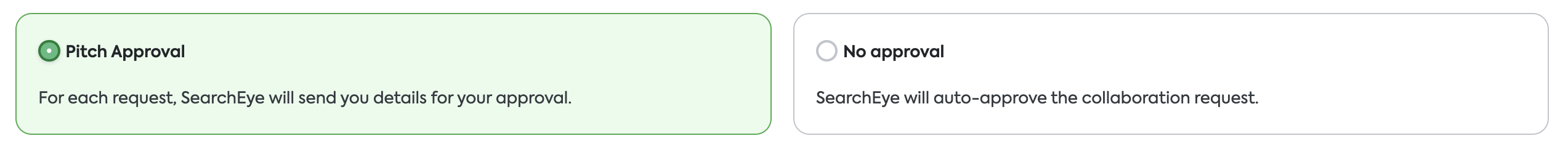 For each collaboration request, SearchEye will provide you with the necessary details for your review and approval.