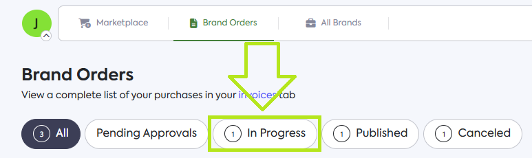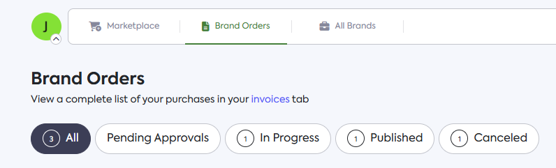 Once you've placed orders on the Marketplace, they will appear under your Brand Orders page. From here, you can easily manage, monitor, and track the progress of all your orders.