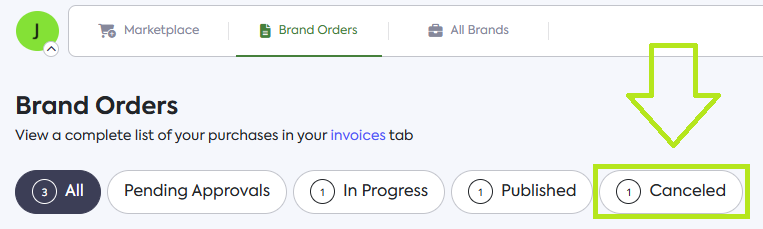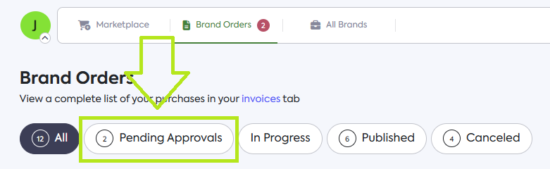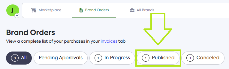 Click on the Brand Orders tab, located next to the Marketplace tab.