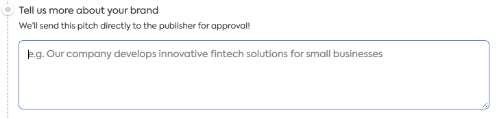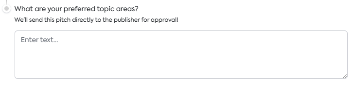 Preferred Topic Areas: Indicate the topics you prefer to be featured in. Unlike keywords (what customers search for), topic areas are the broader editorial categories or conversations you want your brand to be a part of.
