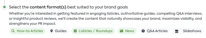 Select Your Preferred Content Formats → We’ll filter for publishers who need the exact Listicles, Guides, or Q&A articles you want.