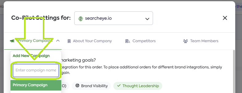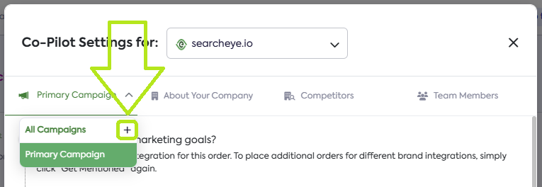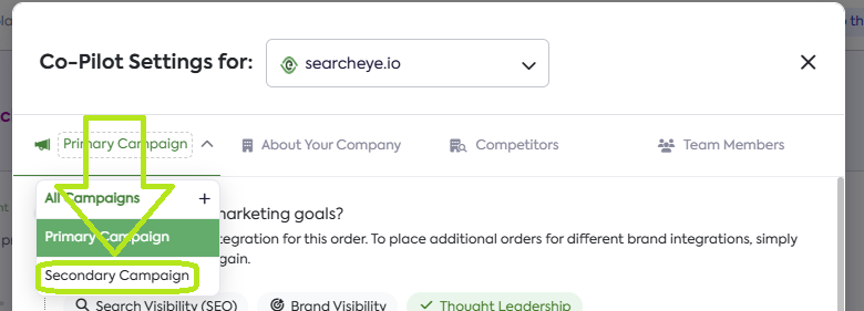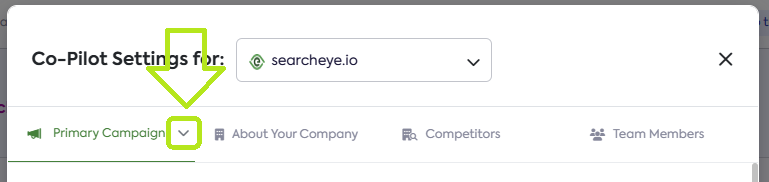 A pop-up version of the Co-Pilot Settings will appear where you can define your campaign and company preferences.