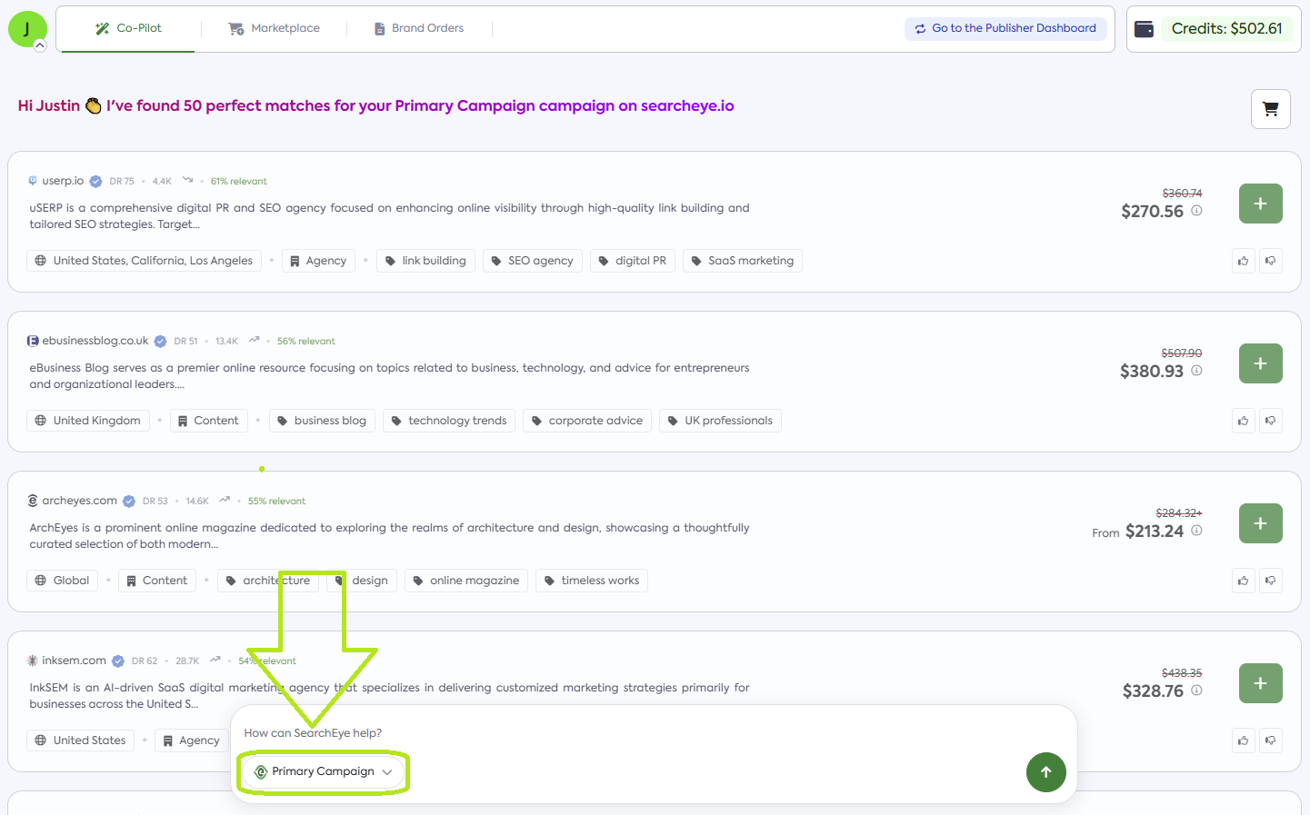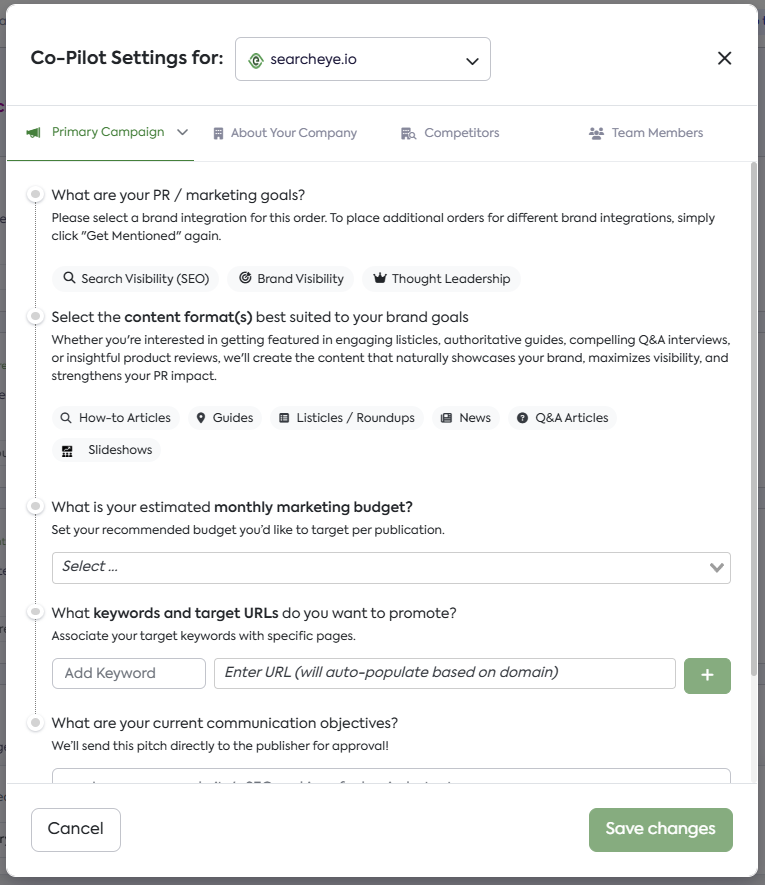 The PR Co-Pilot helps streamline your PR campaigns by automatically matching your brand with the right publishers, generating tailored PR content, and refining results based on your campaign objectives.